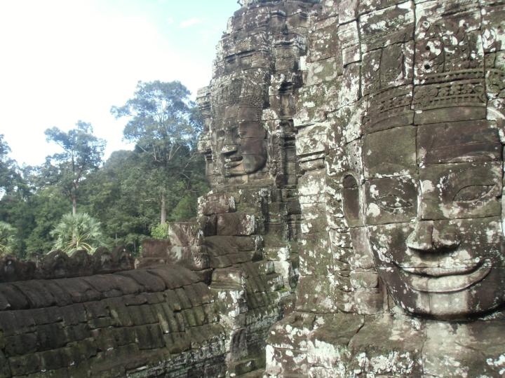 残念ながら途中でスコールが降ってきて移動が大変でしたが、1時間ぐらいでやむとしんじられないぐらいの快晴! その後いいお天気で、あの顔の遺跡で有名なバイヨンへ! アンコールワットはとても広く、遺跡内をバスで移動…遺跡内にも大きな湖が! 驚きです!