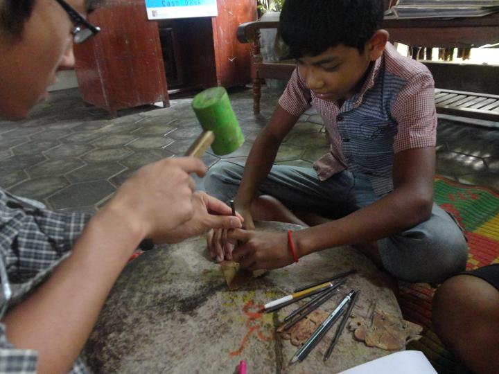 この日はまず前日のディナーで見たカンボジア伝統芸能であるスバエクを、作っている工房へ行きました!また、そのスバエク工房は孤児院でもあり、実際に孤児院の子どもたちが作っているそうです。