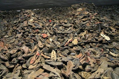 収容者たちは、収容所へ入る前に衣類など身に着けているものを全て没収されました。1番目の写真はその時に脱がされた靴の写真です。