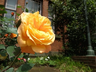 明治学院大学(2014.5.10)「記念館前のアンネの薔薇が咲きはじめました」