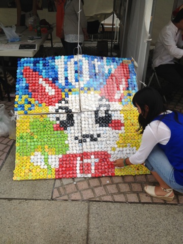 当日、わたしたちのブースでは活動紹介の展示と、ボトルキャップアートを行いました。