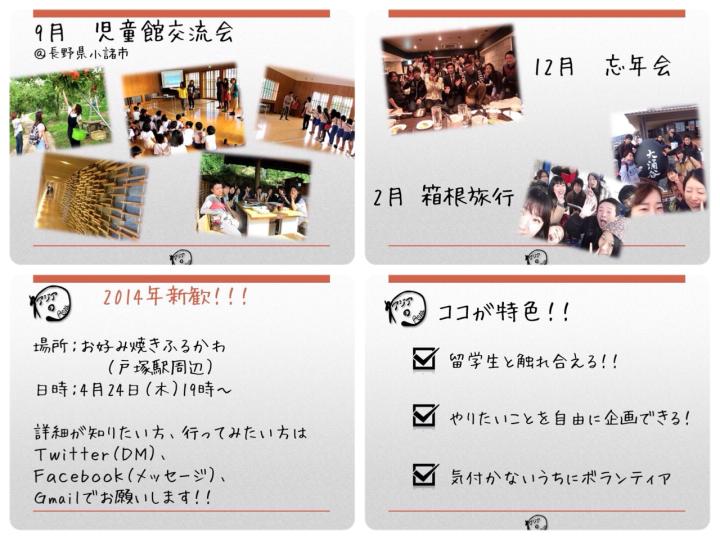 活動紹介:留学生と日本人学生が交流し、お互いに助け合える関係づくりのできる場として活動。