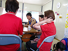 現地の方のレスパイトケアと交流を目的に、特別養護老人ホーム「らふたぁヒルズ」での足浴会を行いました。この足浴という活動をしたことで、高齢者の方々とのコミュニケーションが大切であり、うまく言葉を発せられない方とお話しする際も、笑顔で目を見て相槌などを交えながらコミュニケーションをとることが大切だと感じました。会話の中では、私達が活動を通して知った吉里吉里語や吉里吉里の歴史などが話題となり、コミュニケーションを円滑に行うことができたことから、各活動で得た地域に関する知識などを他の活動とリンクさせることを意識するとより良い活動を行えると感じました。