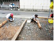 大槌町吉里吉里地区にある堤乳幼児保育園にて、明学生の参加メンバー7名全員で芝の種の入ったシートを針金で留める作業をしました。作業は2日間かけて行いました。初日の10日は作業はスムーズに行えましたが、作業後の強風により一部のシートが剥がれてしまいました。12日は10日の反省から風の対策のため針金の間隔を細かくして作業を行いました。剥がれたシートのはり直しをしたこともあり、芝はりは予想よりも時間がかかりましたが、任された作業をしっかりと実行できました。芝が園庭に生い茂る中で子どもたちが遊ぶ日を楽しみにしています。