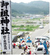 吉里吉里小学校付近の天照御祖神神社(あまてらすみおやじんじゃ)で、吉里吉里地区の郷土芸能である鹿子踊り、虎舞、大神楽が披露され、私たちも見に行きました。このお祭りは約400年続けてきたものであり地域を歩きながら踊りますが、今年は津波で被災した場所が多く、また鹿子踊りの衣装も津波の被害に遭い修復することができたものも数着ありましたが、例年よりも規模を縮小して行われました。6月より数回にわたって私たち明治学院大学生と一緒に遊んでいる小学生数人とこのお祭りで会い、地域を案内してもらいながら一時は避難所となっていた吉祥寺を訪れました。そして午後は急遽、子どもたちからの要望もあり、吉里吉里小学校の校庭をお借りしてサッカーなどを通して遊びました。この日で吉里吉里小学校の夏休みは終了だったので、夏休み最後の思い出となっていたら嬉しいです。