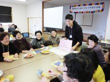 吉里吉里地区にお住まいの方を対象に「吉祥寺三光殿」にてお茶っこサロンを開催し、約25~30名の方が参加して下さった。今回行ったバター作り企画は、材料の入ったペットボトルを振りつつ隣にまわしリレー形式で一つのバターを作るというものである。参加者の方々同士が声を掛け合ったりして大変盛り上がり、「楽しむことができた」、「参加してよかった」などの声を聞くことが出来た。また参加者全員に作ったバターを添えたホットケーキを振る舞ったので、自分たちが作ったものを食べる嬉しさを感じて頂けたのではないかと思う。