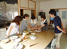 吉里吉里の吉祥寺にて地域に住んでいる方々との交流会を行った。明学生と吉里吉里地域の交流の場として「吉里吉里クラブ」を開催した。当日は吉里吉里郷土料理である「かねなりだんご」を一緒に作ったり、音楽療法を行っているルンビーニカフェの方々と一緒に歌を歌って楽しく盛り上がった。最後には明学生が吉里吉里への思いを発表し、地域の方々に感謝の気持ちを伝え、皆で「歩きましょう」を歌った。