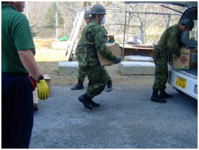 震災発生から1カ月のこの日は午前中、先週と同じ避難所を訪問し、午後は新しい活動先である避難所に赴き、遊び道具を提供しました。 今までとは違う業務をすることで、また新しい出会いがたくさんありました。ひとりは、午前中ユニセフスタッフとともに 県庁を訪れミーティングをした後、名取へ向かい、避難所や教育機関のニーズ調査を行いました。 県庁やNPOと仕事の調整する業務は刺激的でやる気が出ました!