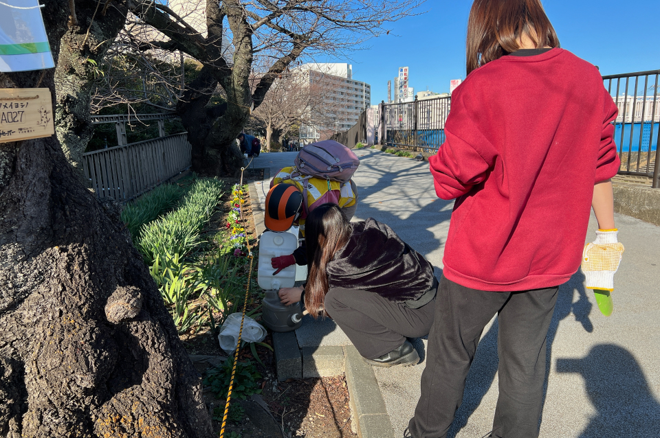 1つ目の「柏尾川沿いの花植えボランティア」の活動内容は川から水をくむ、ずっとしゃがみ込んで花を植えるなどです。学生の私でも決して楽ではない活動でしたが、受入団体の方々はほとんどの方が60歳を超えているなか、地元の桜を守るために活動を何十年も続け、寿命と言われていた桜の木を20年以上守っています。今では戸塚の代名詞にもなっている桜ですが、それらは団体の方々のおかげで綺麗に咲いていることを感じました。感謝の気持ちをお伝えしたところ、「頑張っているのは桜だ」「毎年綺麗に咲いて、見ている人が笑顔になっている姿を見ると本当に幸せ」とおっしゃっており、地域のため、人のために何十年も活動し続けている姿に感銘を受けると同時に、尊敬の念でいっぱいになりました。